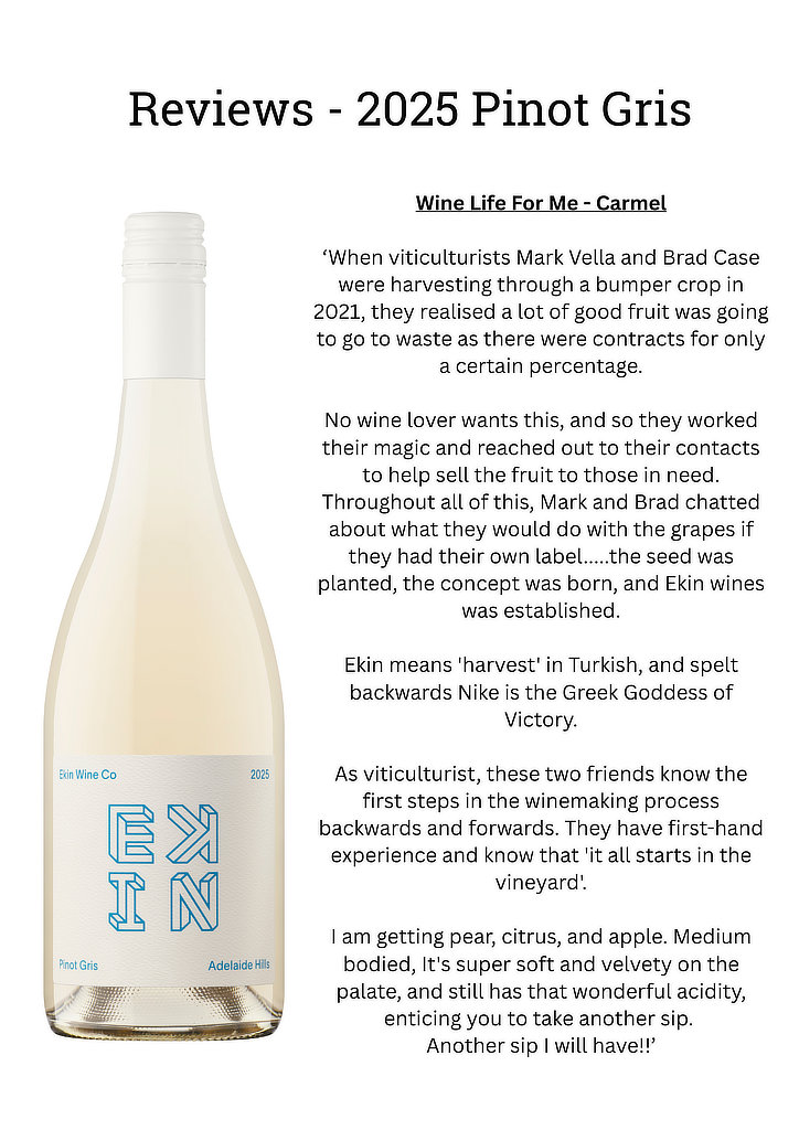 EKIN’s first ever meeting was had ‘as unofficial and unintended’ as it was. The seed was planted – and the concept of mates working with mates now extended to these 2 mates working together to develop EKIN Wine Co.